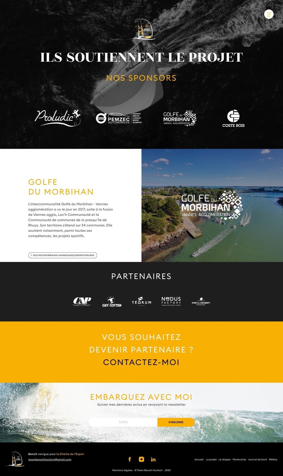 Réalisation du Site internet du skipper Benoit Hochart - 'La chaîne de l'espoir'. Présentation du projet, du skipper et de ses partenaires.