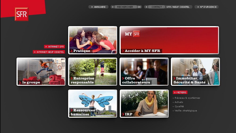 Design d'interfaces pour SFR : Bornes tactiles, intranet, tutoriels, didactique visuels.